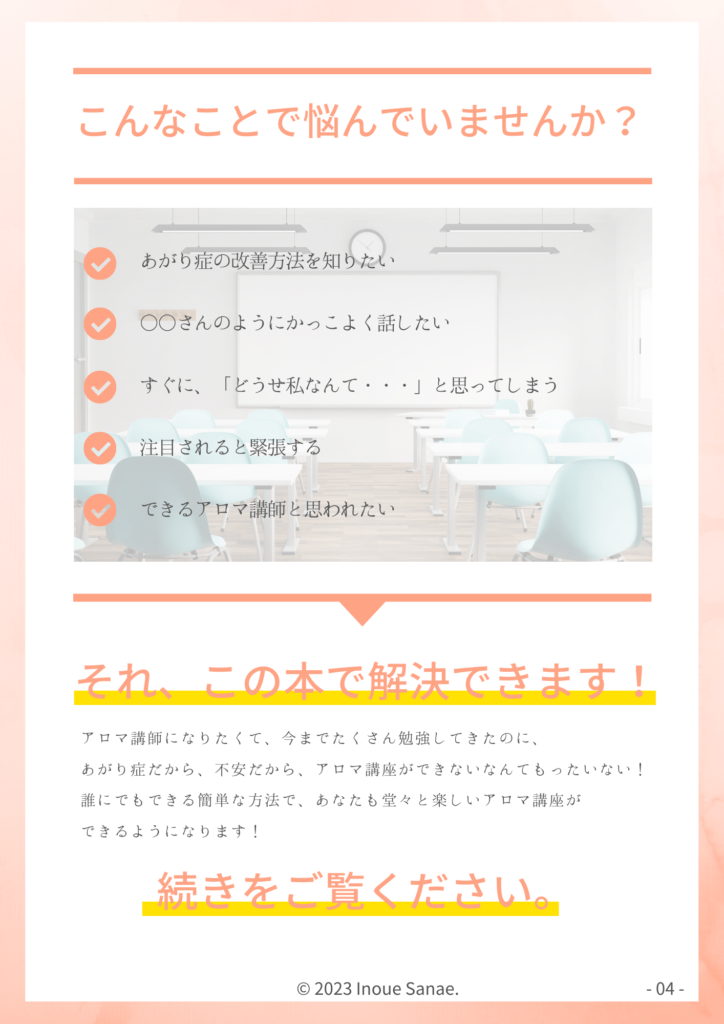 本書では、写真や図解を使って、初心者の方にもわかりやすく、あがり症を改善しオリジナル講座を開催する方法について解説をしています。