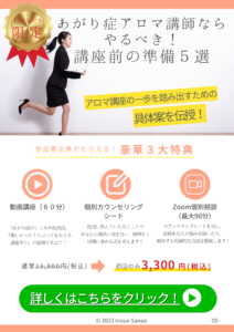 LINE公式に友だち追加をすると、電子書籍「あがり症アロマ講師ならやるべき!講座前の準備5選」を無料でプレゼントします!